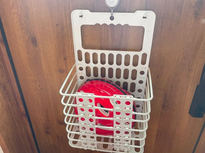 ヘルメットの置き場がなかったので、ちょうどいいし、でかける際にすぐに取り出せるのでとっても便利。