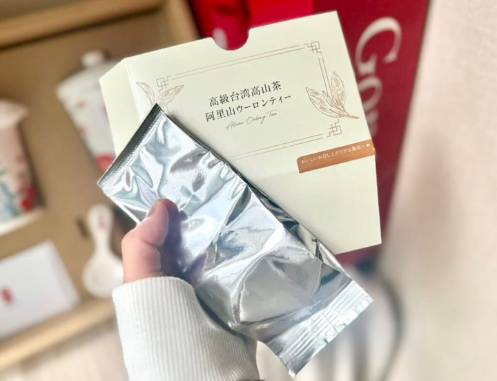 先程「皇帝ティーセット」で淹れてみたのは、同封されている「阿里山ウーロンティー 茶葉20g(5~6杯分)」。すっきりとした風味の高級台湾茶で、ゴンチャで人気のフレーバーです。淹れた時の鮮やかな黄金色が見た目でも“皇帝感”を演出しています。