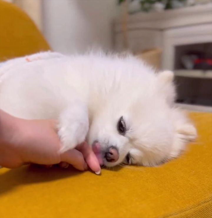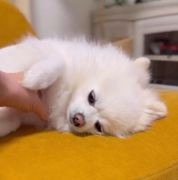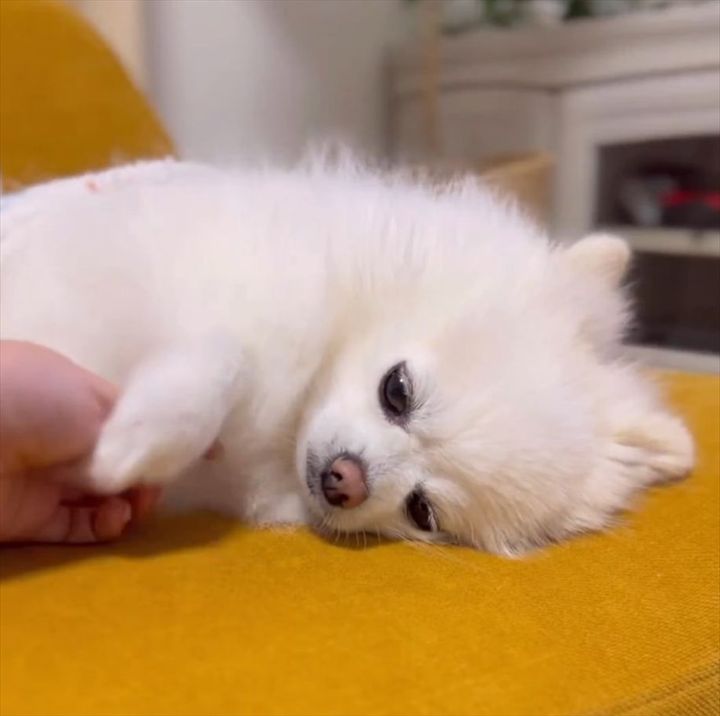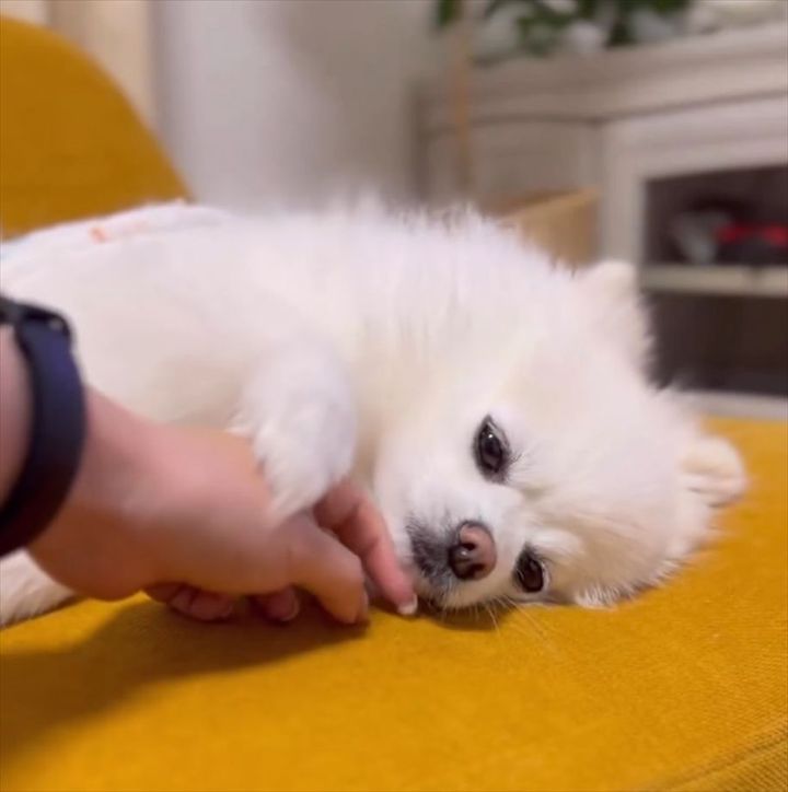 ナデナデするのは、あごじゃなくておなか!手を掴んで撫でてほしい場所に誘導するポメラニアンにビックリ!「自己主張出来るいい子ね」