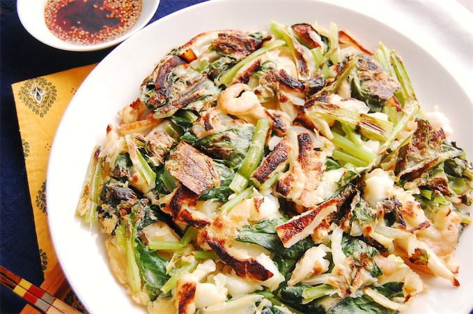 節約・簡単・ボリューム満点!「小松菜海鮮チヂミ」の材料と作り方