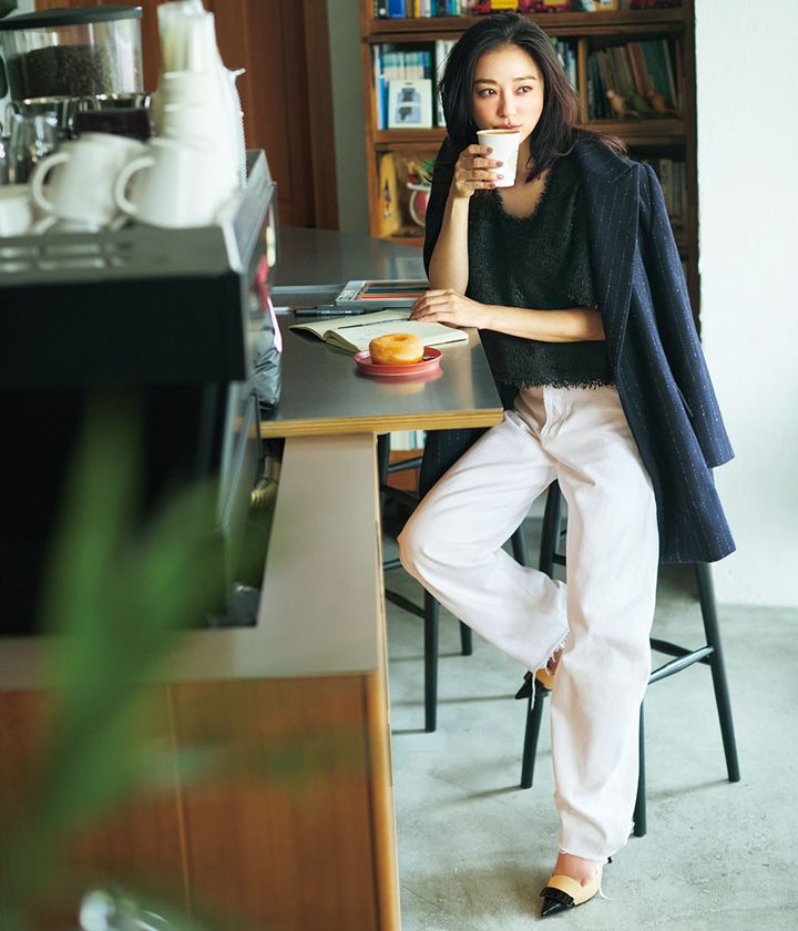 若い頃はいろんなデニムをコレクションしていたほどデニム好きだった中越典子さん。ですが、出産後はまさに公園着と化し、体型の変化からも敬遠気味に……。少しお子さんの手が離れた今、「もう一度オシャレにデニムが穿きたい!」願望が。 特に「挑戦」したい時は、白デニムの潔さを味方になります。