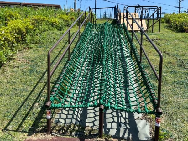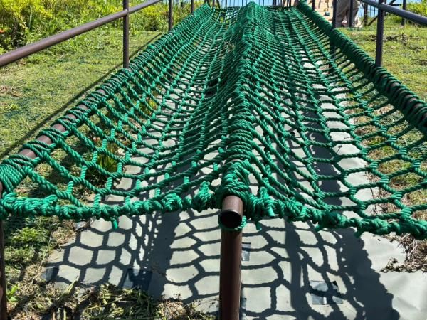 ロッククライミング遊具の設置場所まで、ネット遊具で登ります!