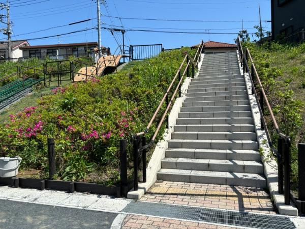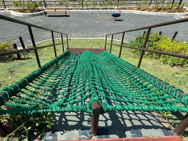 ロッククライミング遊具を登り終えた場所からの景色がこちら。なかなかの高さです。 ちなみに、我が子はとても気に入り、ネット遊具とロッククライミング遊具を登りきっては階段で降りて、またネット遊具とロッククライミング遊具を登る…というかなりの運動量になると思われる遊び方を繰り返していました!