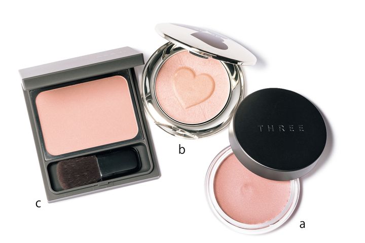 a.頬・まぶた・眉・唇に使える、薄膜のマルチバーム。ピンクの温もりを感じるウォームベージュが、上品な頬を演出。THREE グラムトーンカラーカスタード 04 ¥3,300(THREE)b.じんわりと頬を染めるオレンジベージュに、極小ホワイトパールが透明感をプラス。スナイデル ブラッシング ハート EX06 ¥3,630※限定品(スナイデル ビューティ)c.ヘルシー感と大人の落ち着きを備えたピーチベージュ。自然な陰影が顔立ちを引き立て、美人度を上げてくれます。オサジ ニュアンス ブラッシュ d05 ¥3,300(オサジ)