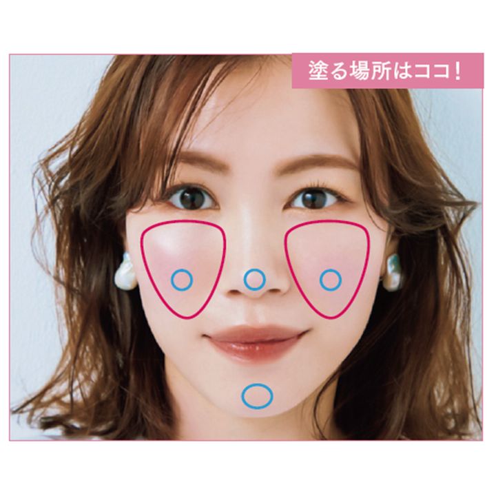 顔全体に血色感を足すのがカギ!薄発色のベースチークを広く、そこへ発色のいいメインチークを重ねてグラデーションを作ってみよう。