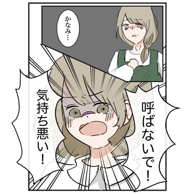 名前の由来を知ってしまい落ち込む叶実ちゃんに、「かなみ・・」ゆうかさんが声をかけると「呼ばないで!気持ち悪い!」と大きな声で怒鳴る叶実ちゃん。