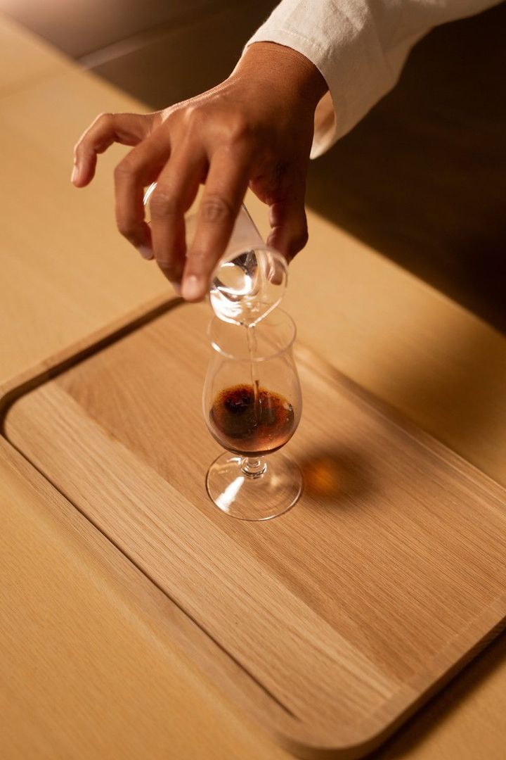 本コースは、コーヒーノキの葉、花、果実を余すことなく味わえる、「リーフ」「フラワー」「チェリー」の3種のオリジナルドリンクからスタート。次に登場するのは、今季新たにお目見えした「ソリュブル」だ。XR(Exceedingly Rare=極めて希少な)コーヒー豆を使用して誕生した特別なインスタントコーヒーで、コーヒー豆のロースト、抽出、結晶化の工程をすべて行い、コーヒーが持つ本来の豊かなアロマと味わいを最大限に引き出した。