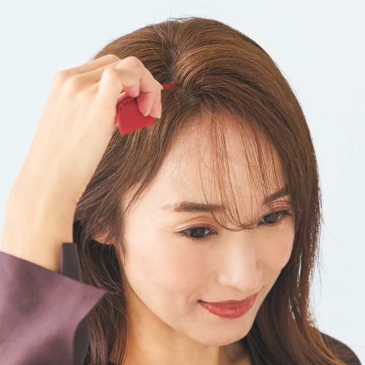 1.分け目がハッキリ見えないようにサイドパートにします。