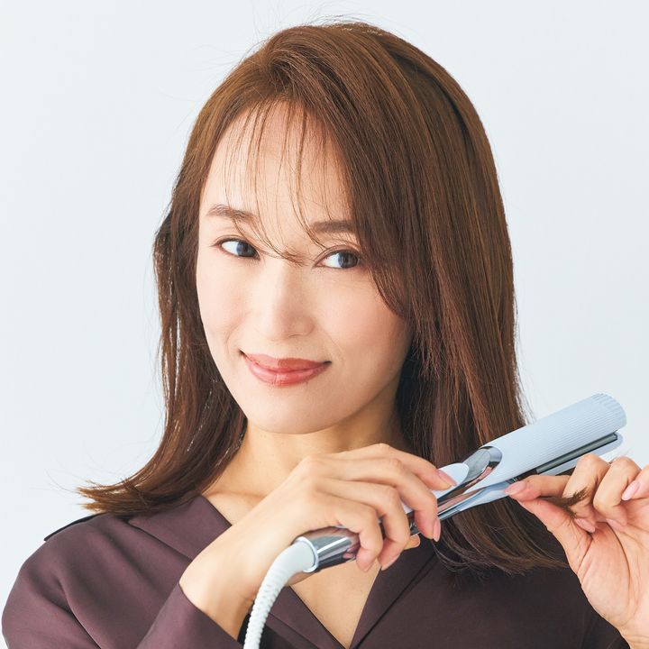 2.こめかみ部分や側頭部の髪の根元が潰れるように、ストレートアイロンで外ハネにします。