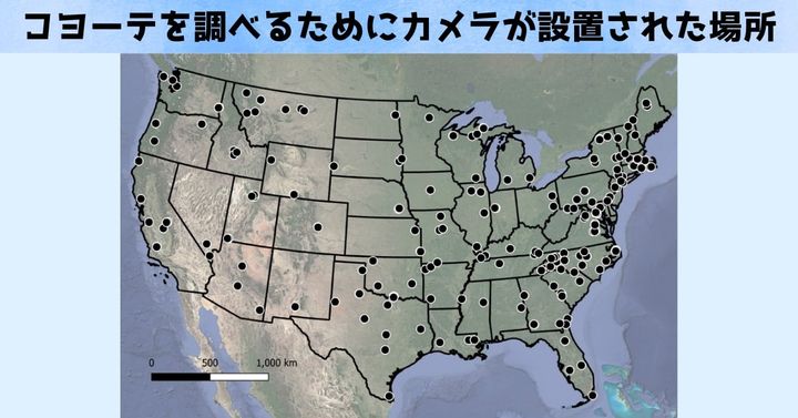 調査にあったっては、まずアメリカ全土に4587台のカメラを設置され、コヨーテの生息数の大規模な調査が行われました。