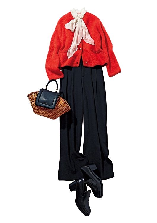 目を引く赤を味方に、内面からあふれ出るオーラを体現。可愛いよりもカッコいい着こなしで、美人感を漂わせて。黙っていても情熱が伝わるコーデで、主役の座をいただき!目立ってなんぼの欲求を満たす赤がドンピシャ。熱量をまとって、記憶に残る女性に。