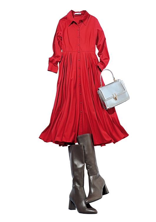 ワンピース[共布ベルト付き]¥27,500/JENNE(JENNE 表参道店) バッグ¥12,100/MERCURYDUO(MERCURYDUO ルミネエスト新宿店) ブーツ¥15,950/RANDA