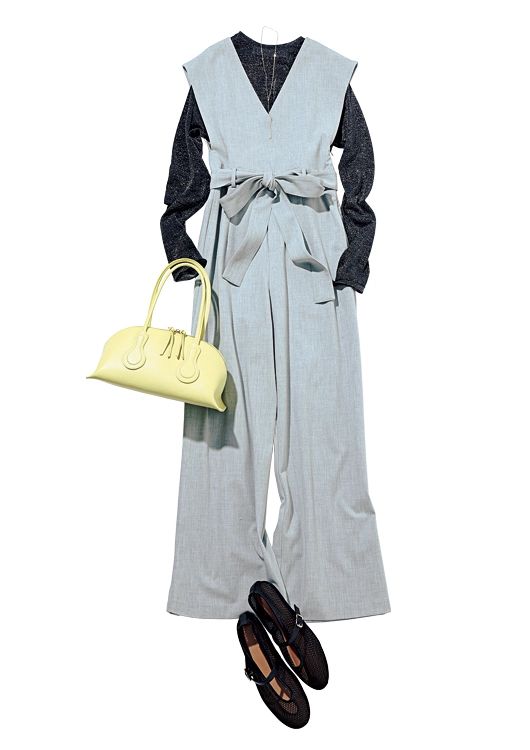 ジャンプスーツ¥19,800/AKTE シアーカットソー¥3,960/CITEN(ユナイテッドアローズ) ネックレス¥39,600/e.m.(e.m. 青山店) バッグ¥23,100/HASHIBAMI(コレクト) フラットシューズ¥13,200/ROSE BUD(ROSE BUD ルミネエスト新宿店)
