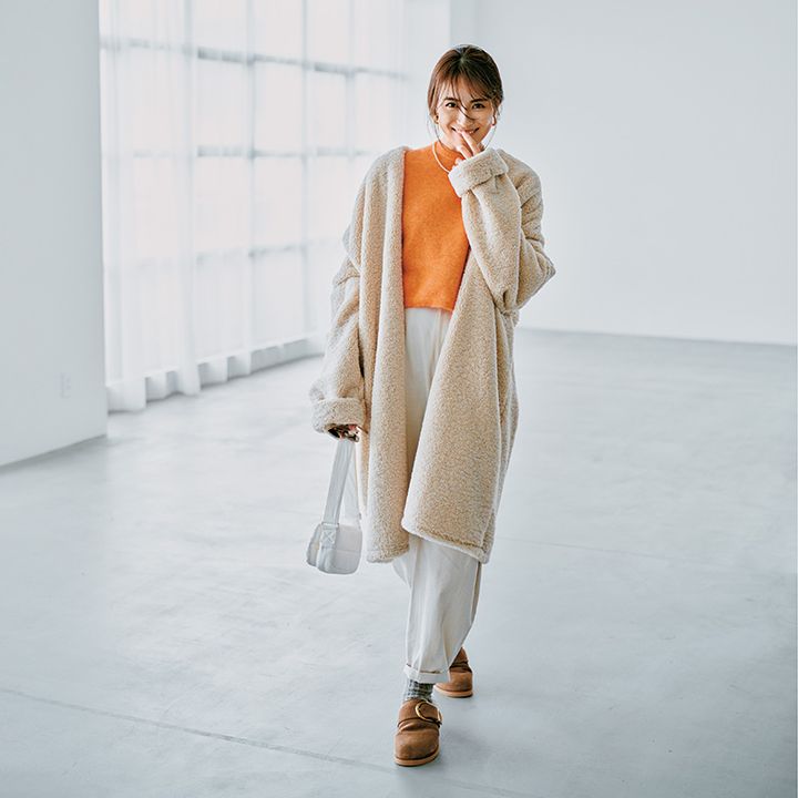 カーデ感覚の【ボアコート】がデイリーに活躍!ロング丈でもすっきり見え