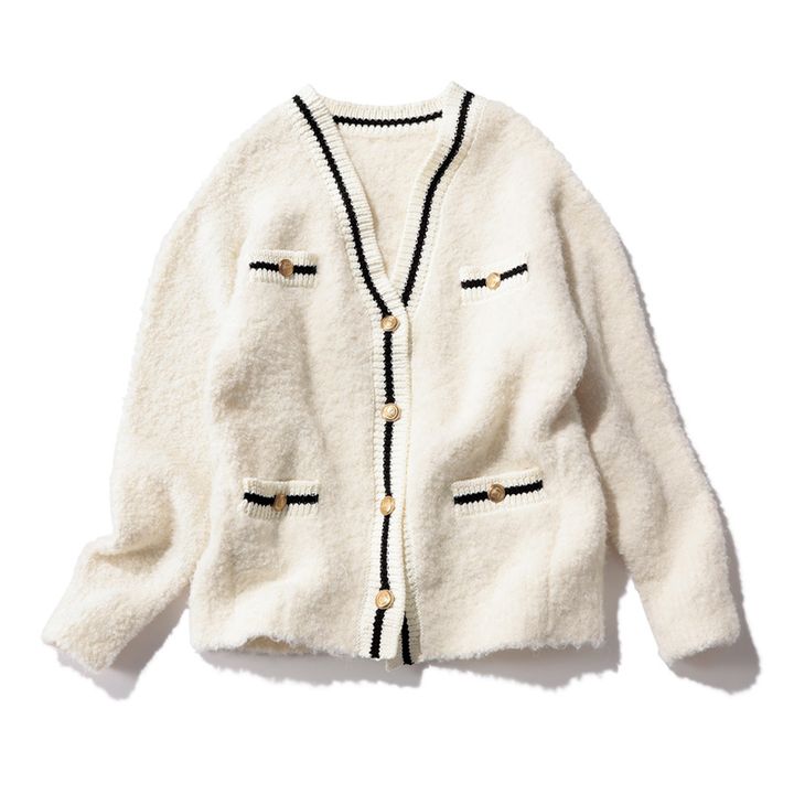 ライン×金ボタンで冬のモノトーンも即洒落る!カーディガン¥20,900(アルページュ ストーリー/アルページュ ストーリー プレスルーム)