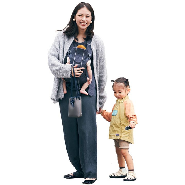 「娘の定期健診や予防接種は、抱っこ紐の上から羽織るだけでキマるカーデをヘビロテ。お尻まで隠れる丈で産後の気になる箇所もカバーしてくれて安心」