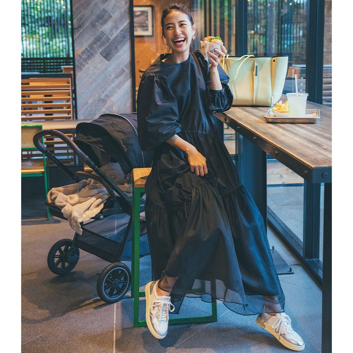 「散歩帰りに子どもが寝たからサクッとカフェへ」 短時間のお出かけだからこそオシャレしたい 2時間ワンピース