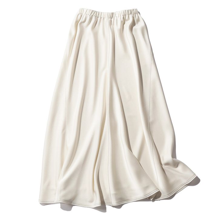 艶のある生地で上品さを担保できるのに、総ゴムで楽ちん。スカート¥42,900(DES PRÉS)