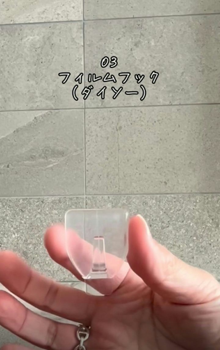 最後に、ダイソーで販売されている「フィルムフック」をご紹介します。壁などに取り付けて、穴を開けることなく小物を掛けるためのアイテムです。
