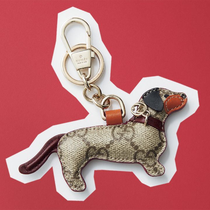 ブランドのアイコンであるGGパターンがあしらわれた犬モチーフ。ミニマムなサイズ感だから、他チャームとじゃらづけして盛るのも良し。ボルドーのおしゃれな首輪にはインターロッキングGチャームが!