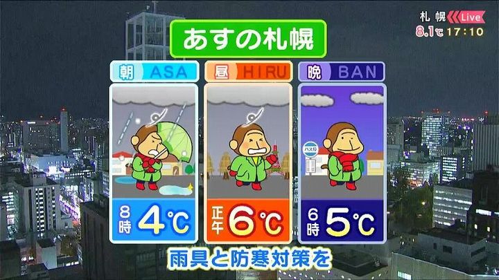 13日の札幌です!朝昼晩の天気をもんすけでお伝えします!