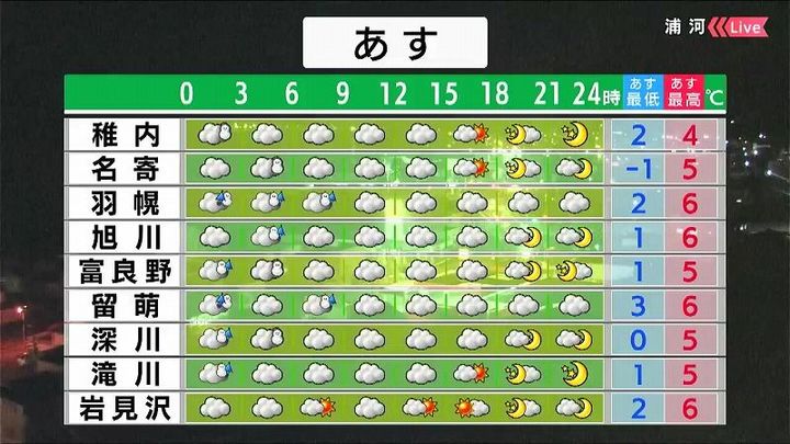 木曜日は日差しが出ます。週末は寒さが解消しますが、くもりや雨とスッキリしないでしょう。来週は道北を中心に平地でも雪が積もりそうです。