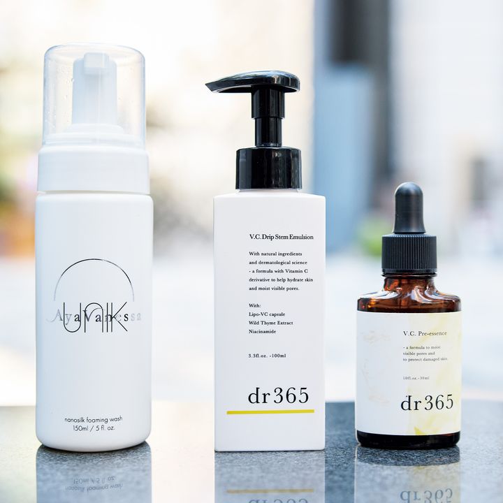 unikの洗顔フォーム、dr365の美容液と乳液を毎日使用。ゴワついていた肌が柔らかくなり、自然なツヤとハリが出るようになりました。