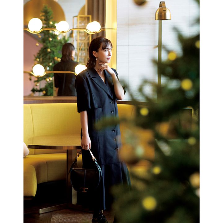 ワンピ1枚でもきちんと見えする ジャケット風のデザインがオシャレ。 今っぽさのあるハレの日コーデに