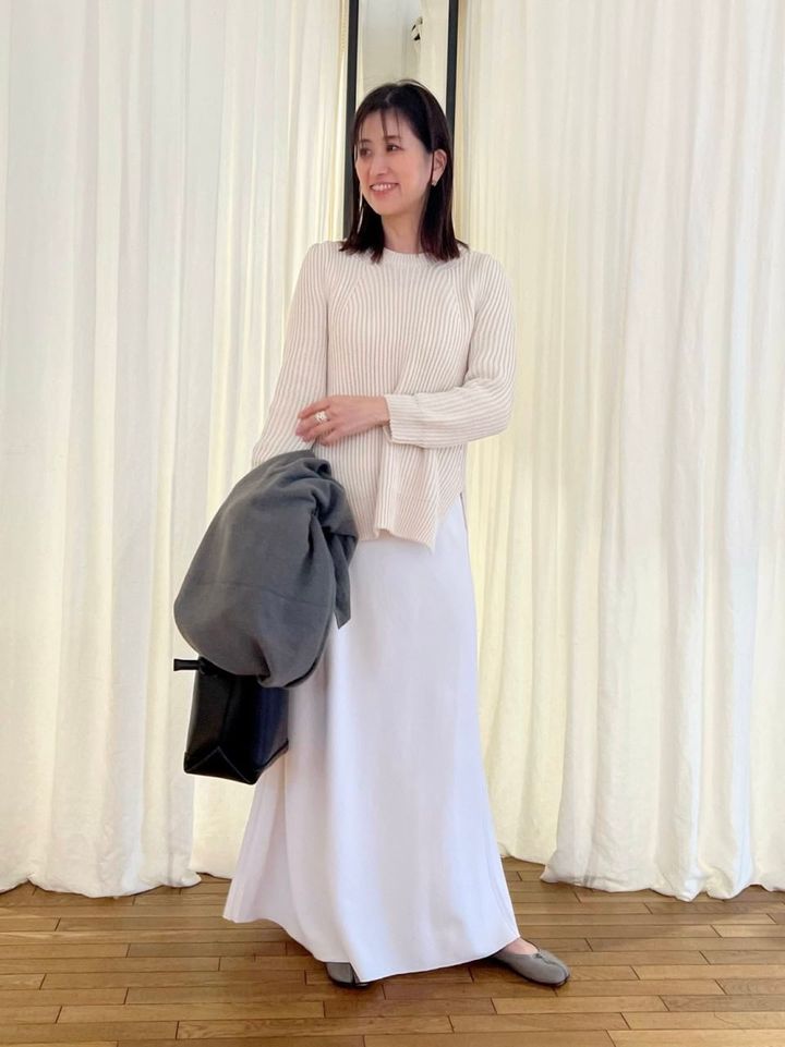 3. おしゃれな大人が愛用する白ニット。晴れやかさ引き立つ小物に注目【365日スナップ】山本了子さん