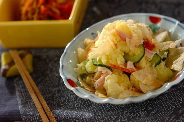 大人も子どもも大好きなポテトサラダにポテトップスを入れました!そのまま食べたり、パンに挟んだり食感を楽しみながら食べても◎