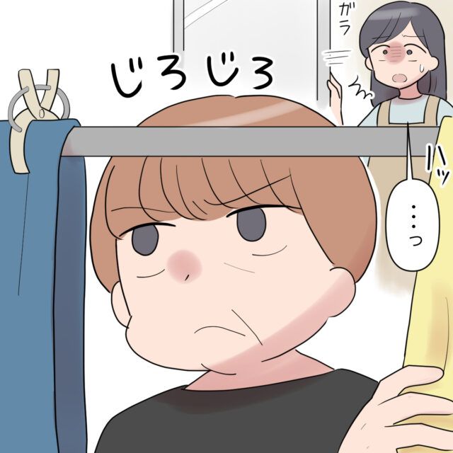 2回目の洗濯物を干しに行ったカエデさんはハッとします。義母が干された洗濯物を舐めまわすようにじろじろと見ていたのです。