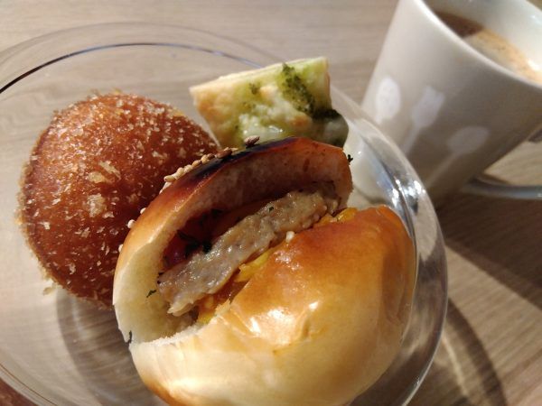 かわいいサイズのハンバーガー、カレーパン、サクサクピザに胸きゅん!スタッフさんとおしゃべりをしていて、少し焦がしてしまいましたがオイシイ~。他にも甘い系では、クロワッサン各種、練乳フランスが好みでしたよ。