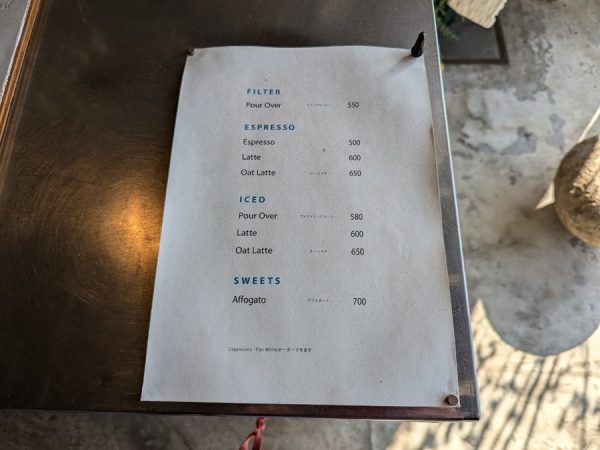 さっそくカウンターでメニューを拝見。 今回は「アイスドリップコーヒー」(580円)を注文。
