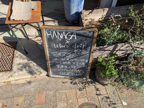 「HANAGA」の文字。 じっくり見てみると「ステーキ」の記載も。 コーヒー専門店だったけどランチも食べれるのかな?なんて思いながら入店。