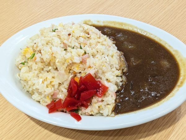 カレピーの発祥は1984年頃、「ピラフにカレーをかけて」という学生のリクエストから誕生したものだとか。 ピラフは洋風ではなく、どちらかというと「焼きめし」と呼びたくなるような懐かしさでした。 白いごはんがちょっと恋しくなりつつも、ピラフとカレーの相性も不思議と美味しい!