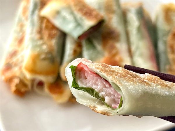 普通の餃子と違って、あんを作らなくていいのと、ほとんど油を使っていないので、油跳ねせずコンロが汚れなくて済むので、とてもラクチンな料理でした。子どもも喜ぶし、おつまみなんかにもよさそうです。その上お財布にもやさしいので時々は作りたいと思いました。中の具ににんじんの千切りなどを挟んでもいいし、青じその代わりにバジルの葉などでもいいそうです。自分好みにアレンジしても楽しそう。よかったら作ってみてくださいね。