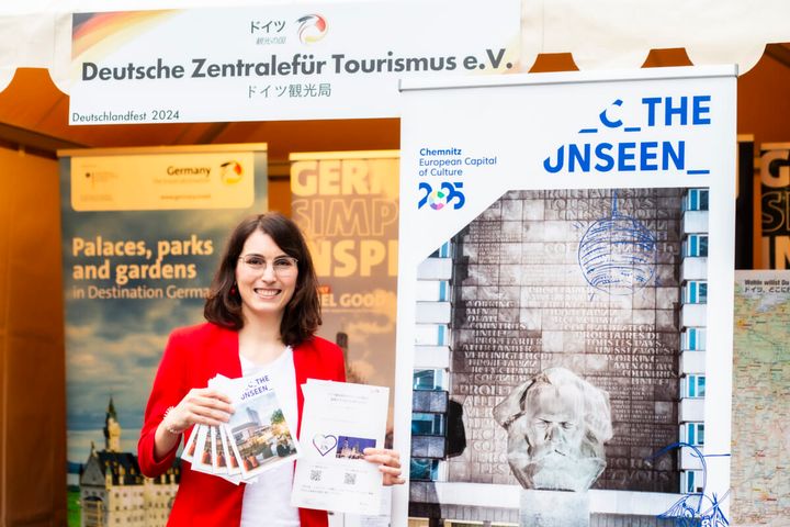 その欧州文化首都ケムニッツ2025の広報官であるFrizzi Seltmann(フリッツィ・ゼルトマン)さんが、毎年3万人のドイツファンが集まる東京の「ドイツフェスティバル2024」を訪れ、PR活動を行いました。