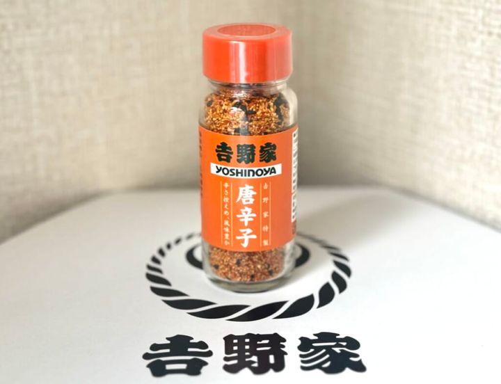 常温保管の商品。吉野家の唐辛子は陳皮の比率が高く、香りが高いことが特長。辛さは控えめなので、素材の味を邪魔することがありません。ひと振りすれば、どんな料理も吉野家風になるかも!?