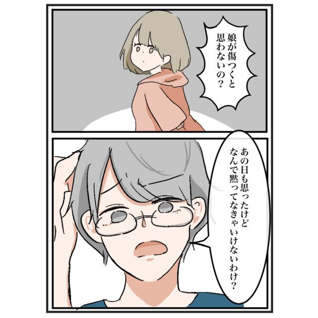 「娘が傷つくと思わないの?」とご主人にゆうかさんが言うと、「あの日も思ったけど、なんで黙ってなきゃいけないわけ?」とご主人が逆ギレして言いました。