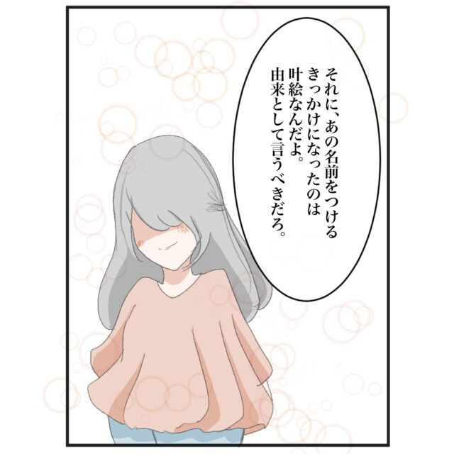 さらに、「それに、あの名前をつけるきっかけになったのは叶絵なんだよ。由来として言うべきだろ」ご主人が続けて言いました。