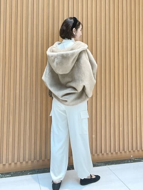 オールホワイトで軽さも出して上質素材のアウターをコーデの主役に。リアルファーのような高見えする質感とポンチョのシルエットが大人フェミニンを叶えます。シンプルだけど落ち着いた印象の上品さが周りと差のつくスタイルです。