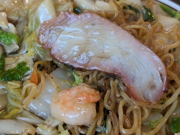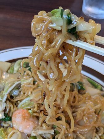 焦がし中縮れ麺と熱々の野菜あんは、コク旨ジューシー。めちゃ美味しくて悶絶(笑)