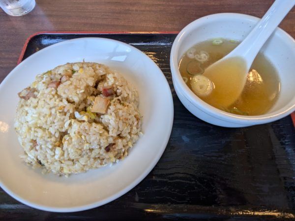 こちらは炒飯に中華スープ付き。 鶏ガラと塩の絶妙な味加減が最高! 町中華の炒飯ってなぜこんなに美味しいのでしょう〜。