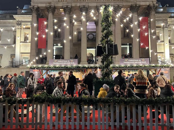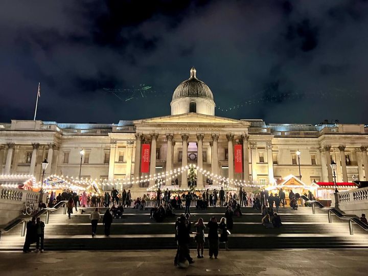 ロンドンの人気観光スポットとして知られるトラファルガースクエア。大英博物館の目の前のこの広場では、毎年可愛らしい木造シャレーが30件以上も立ち並び、伝統的なドイツのクリスマスマーケットの雰囲気を感じることができます。