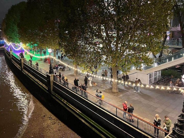 日が落ちてイルミネーションが点灯すると、木々や歩道を埋め尽くすライト、美しいロンドンの夜景でロマンチックな雰囲気に。ホットワインを片手に、夜景を眺めながら散策する優雅なひとときを過ごせちゃいます。