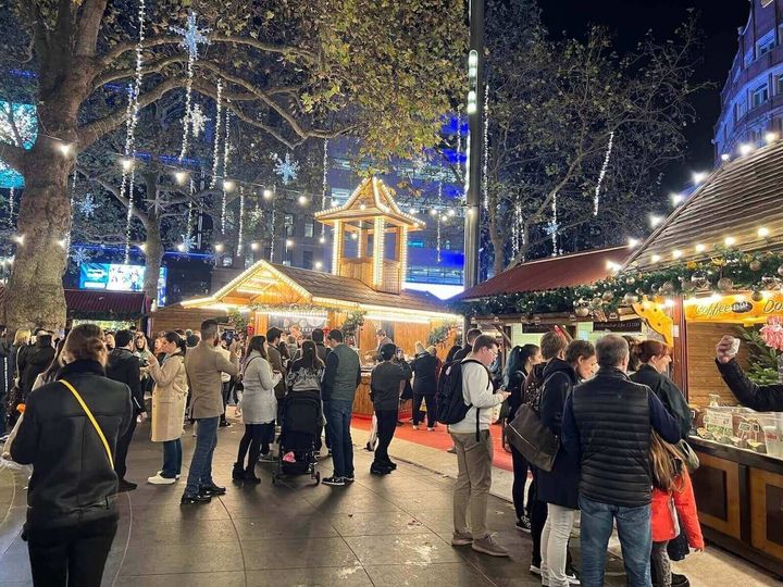 ロンドン観光に欠かせないセントラルロンドンに位置するレスタースクエアも、毎年この時期にはクリスマスマーケットが開催されます。
