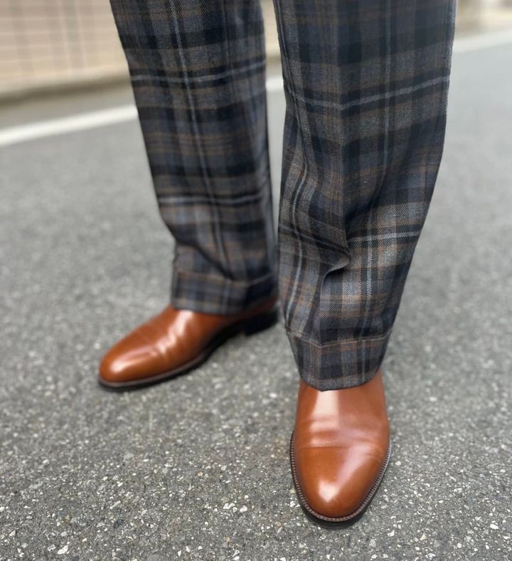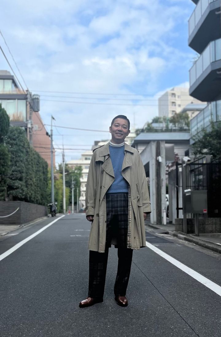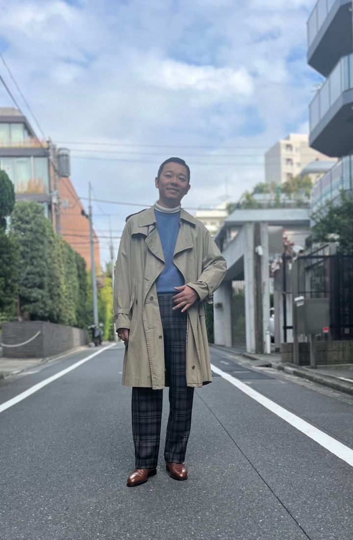 尾崎さんは触れていませんでしたが、パンツのチェックで、ニットとトレンチコートそれぞれの色を拾っているのも見どころのひとつ。「Vゾーンや色もそうなんですが、男性のファッションには重ねる文化があります。そうやって自分らしい着こなしを作り上げていく感じが好きなんですよね。オトナミューズ読者のみなさんも、冬ならではのさまざまなレイヤードをぜひ愉しんでください! 」