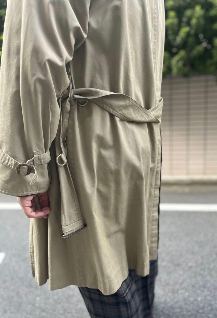 ヴィンテージのバーバリーのコート、グレンマックに別注したサンカッケーのニット、ヤングアンドオルセンのカットソー、ベルナーズザンスのパンツ、ジェイエムウエストンのサイドゴアブーツは尾崎さん私物
