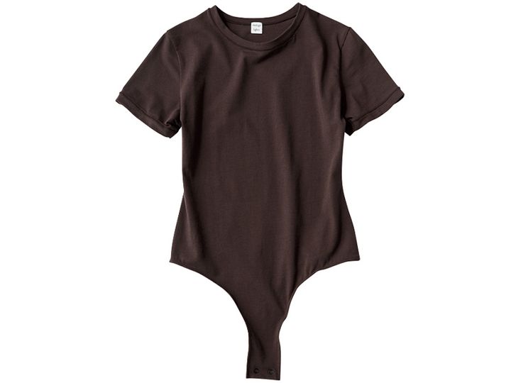 「小さめ袖やコンパクトなフィット感で女っぽさを内面から醸せるボディスーツ。甘さと今っぽさが香るTシャツスタイルに」
