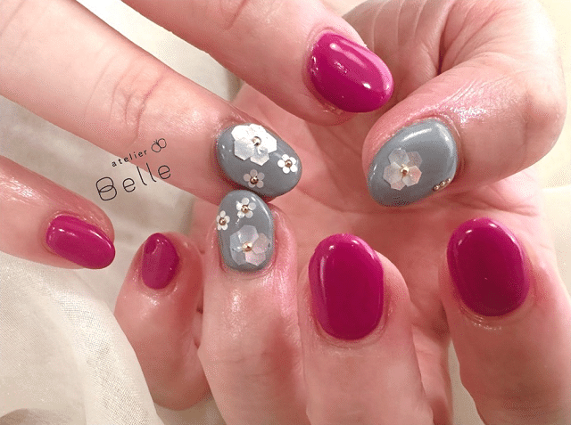 こっくりと深みのあるピンクとグレーに人気のホロフラワーを合わせた新作デザイン!